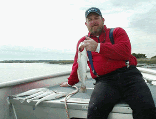 Immediately had my Trout limit of 5 from 15" to 19", but they were all skinny fish. Basically went back to the same place I took Travis the other day, and tried it again. The trout were seriously scattered along a 100 yard piece of the creek, way back in the salt marsh.